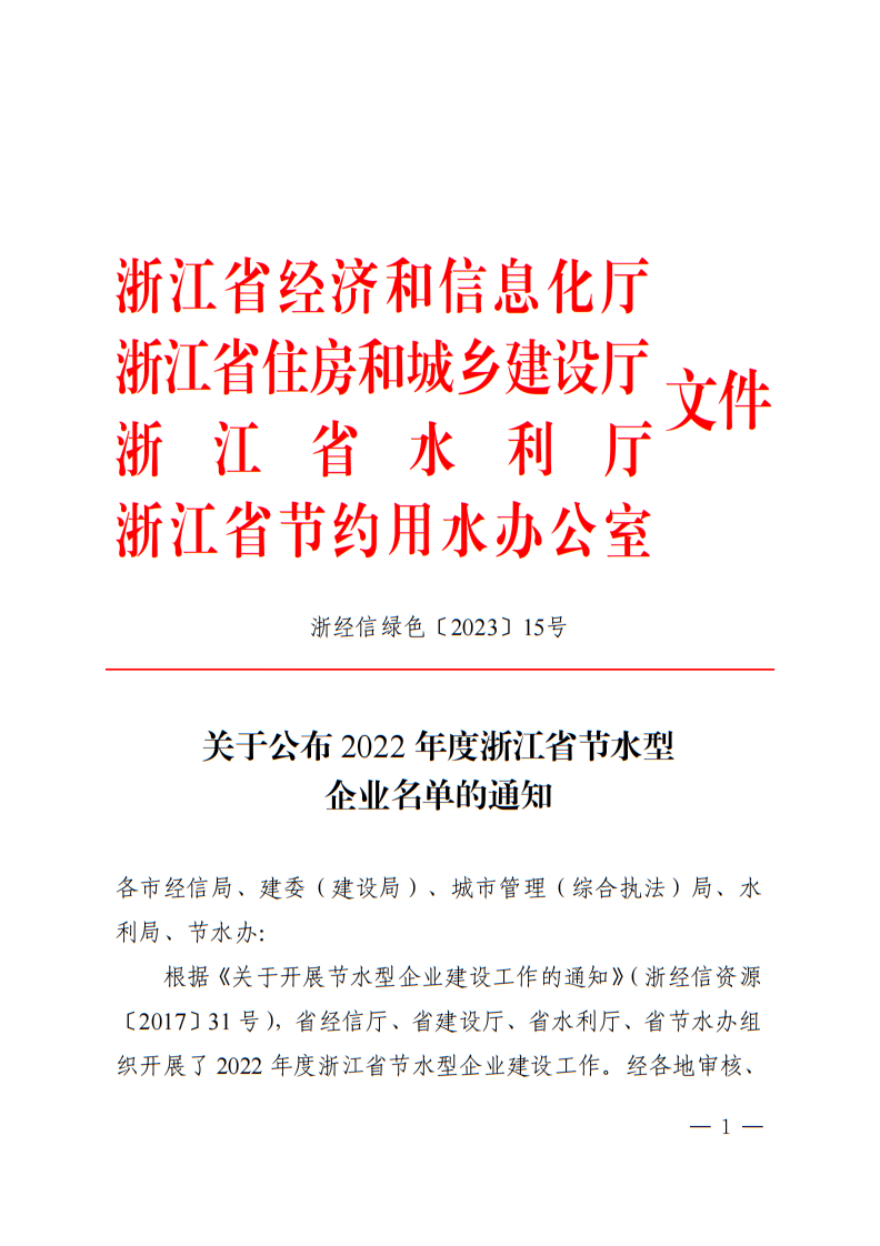 2022年浙江省節水型企業名單1